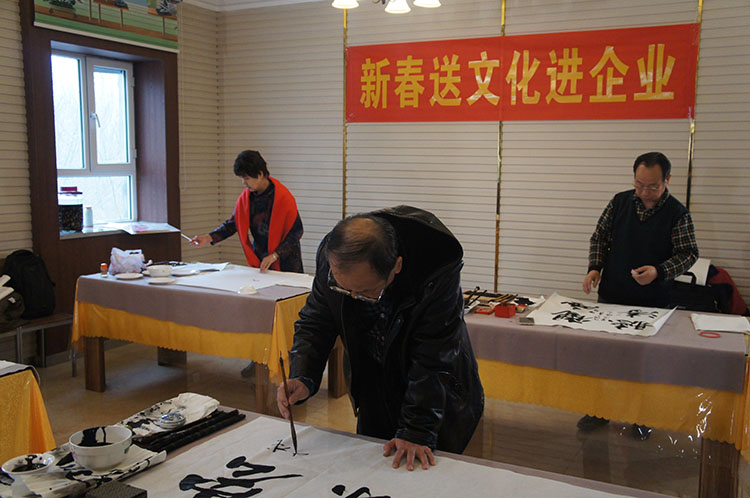 自治區(qū)老年書畫學(xué)會的老師為公司書寫創(chuàng)作字畫和新春對聯(lián)